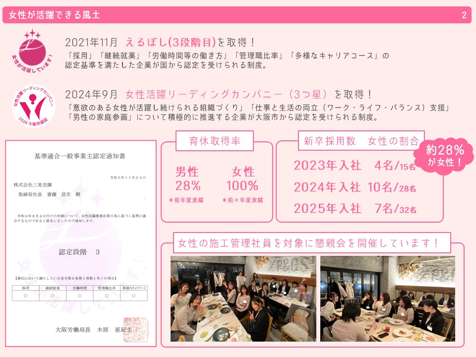 | 事業内容 | 当社は建設業界における空調・衛生設備のサブコン(専門工事会社)です。 超高層オフィスビル、学校、ホテル、テーマパーク、病院などの空調・衛生設備の企画設計、施工管理などを行っています。 |