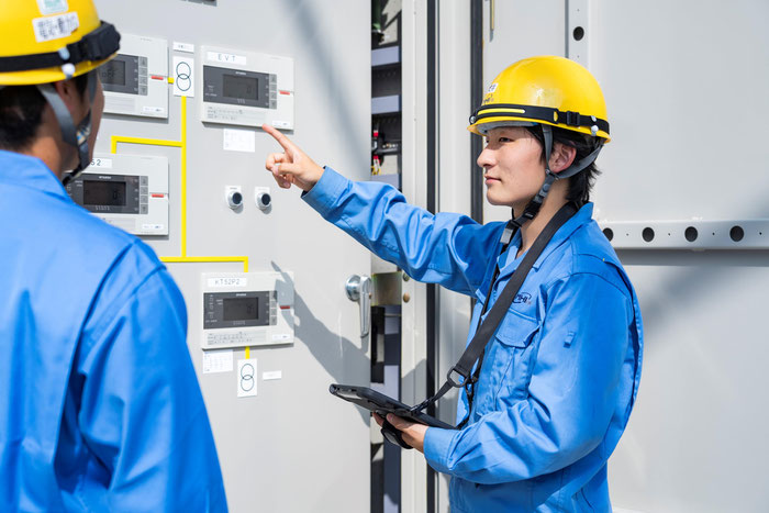 当社は、三菱重工の各製造工場において、製造に必要な『電気・水・エアー・ガス・蒸気等』を安定的に供給できるよう、これらのインフラ設備を毎日、保全・監視に取り組んでいます。
