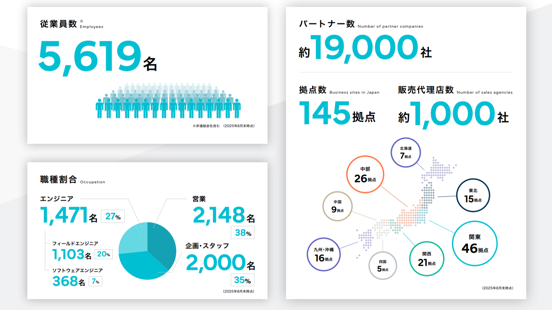 | 事業所 | 全国47都道府県 150拠点 |
