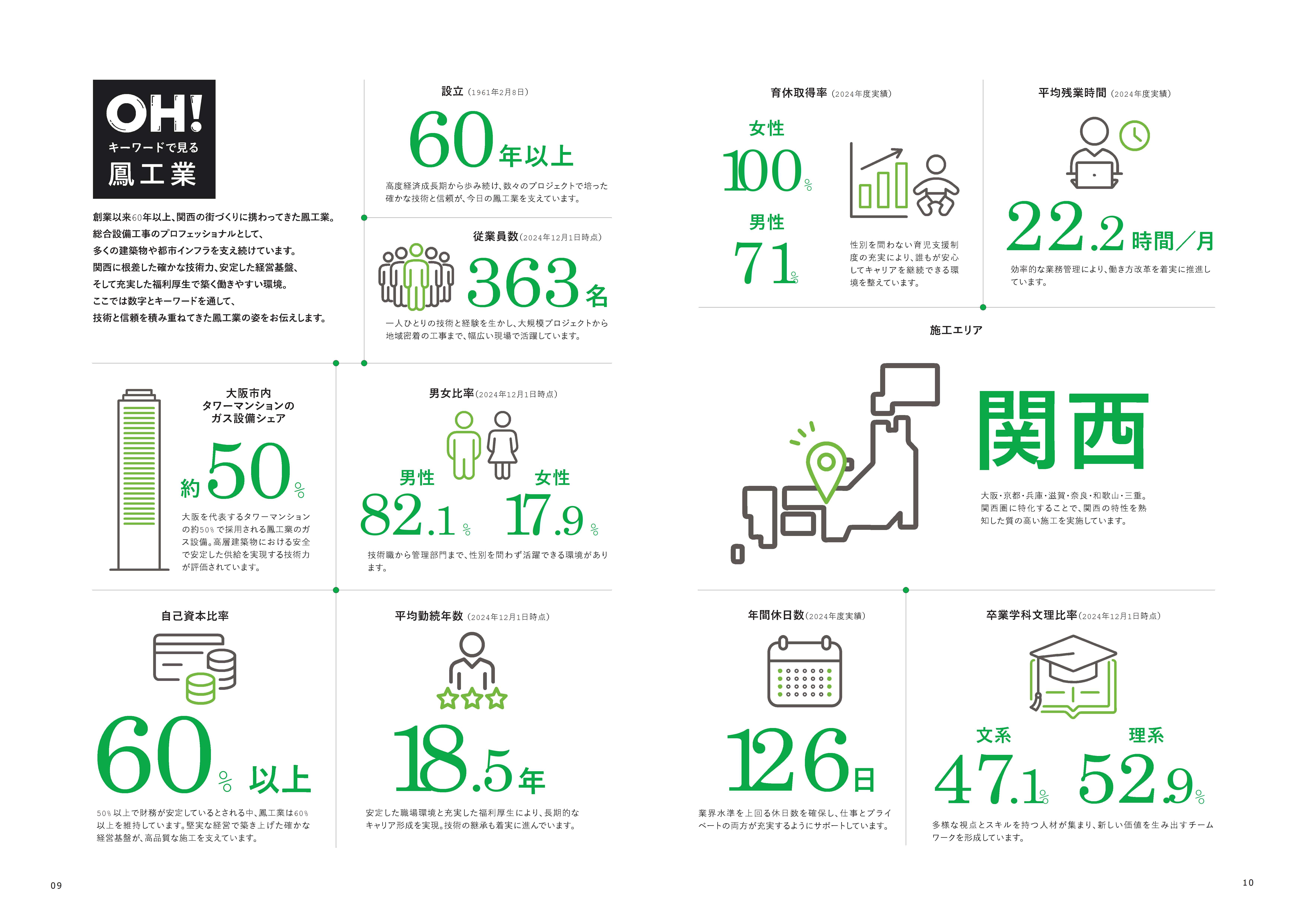 | 主要取引先 | ■官公庁 国土交通省、防衛省、UR都市機構、大阪府、大阪市、大津市、神戸市、吹田市、摂津市、堺市、高石市 ■一般企業 Daigasグループ、㈱大林組、オリックス不動産㈱、キャタピラージャパン合同会社、㈱きんでん、㈱クボタ、㈱鴻池組、三機工業㈱、㈱三晃空調、清水建設㈱、新菱冷熱工業㈱、須賀工業㈱、積水ハウス㈱、ダイダン㈱、大和ガス㈱、㈱竹中工務店、㈱テクノ菱和、東急不動産㈱、東京建物㈱、NEXCO西日本、阪急電鉄㈱、三井不動産レジデンシャル㈱、三菱地所レジデンス㈱ 他多数 |
