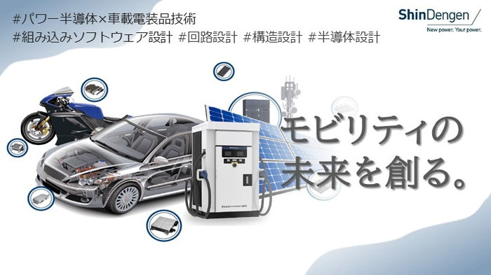 当社では、パワー半導体や二輪車・四輪車用電装製品、EV充電器、通信用整流器などパワーエレクトロニクス技術や半導体加工技術を駆使して、設計開発・研究開発を行っています