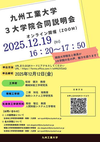 生命体工学研究科事務課・教務・入試係 sei-nyushi@jimu.kyutech.ac.jp